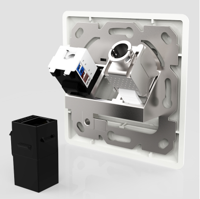 使用之后放于墻上的網絡面板,既美觀又簡單大方,嵌套在墻壁里的底盒,采用的也是優(yōu)質工程級材質ABS一體注塑成型,只要是標準RJ45接口的網絡模塊都可以應用在此面板上。底盒中放置的鋅合金支架,可嵌套各種網絡模塊、直通頭應用。